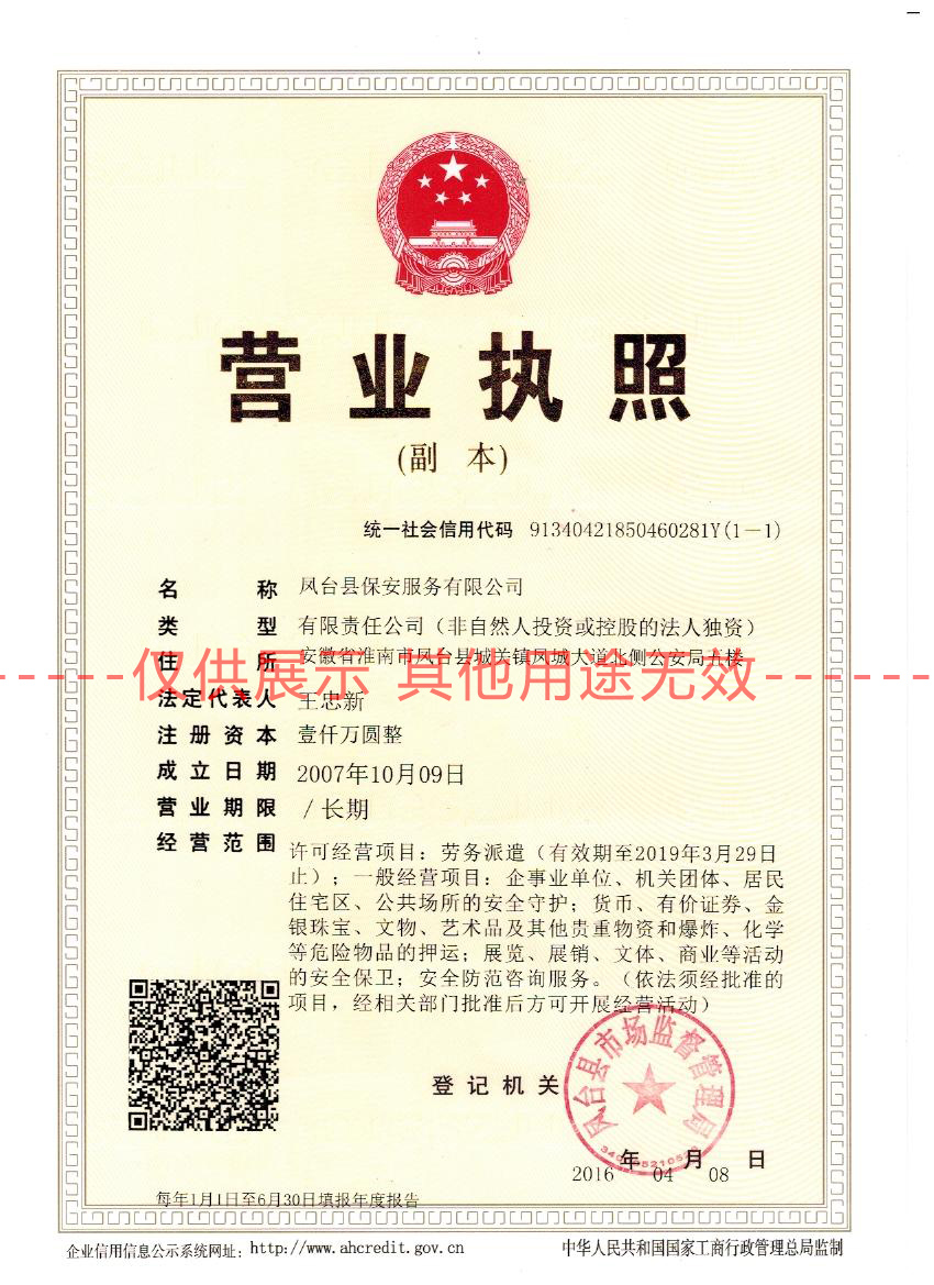齊備的國家資質(zhì)認證保安服務(wù)許可證